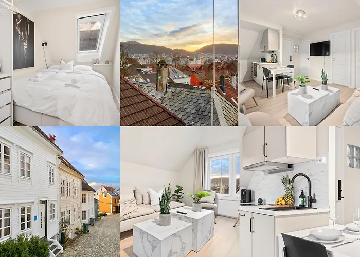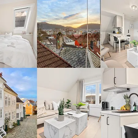 דירת Penthouse - View To Bryggen - Live In Historic Cobblestone Street ממוקמת במרכז של ברגן, בקרבה על פלויבאנן. במקום שהייה זה ישנו מטבח מיני המצויד במיקרוגל, קומקום חשמלי ומקרר.